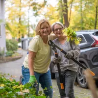Am Samstag, 15.10.2022, wurde zur jährlichen Garten-Herbstaktion eingeladen. Mit Rechen und guter Laune bewaffnet, wurde gemeinsam mit Bewohner*innen und Angehörigen das Laub vom Rasen geharkt und von den Wegen aufgesammelt. Obwohl noch die meisten Bäume nicht alle Blätter haben fallen lassen, füllten wir mehrere große Tonnen mit dem Laub und Gehölz. Zum Abschluss gab es für die eifrigen Gartenhelfer einen warmen Eintopf, Salat und Buletten sowie Donuts, Kaffee und kalte Getränke zur Stärkung zwischendurch.