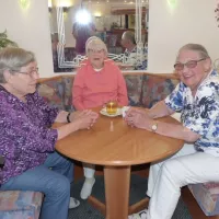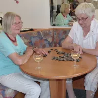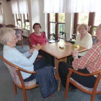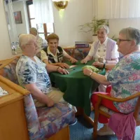 Seit einigen Wochen darf wieder gezockt werden. Bewohnerinnen und Bewohner erfreuen sich in derzeit 15 Gruppen an Kartenspielen, wie Doppelkopf, Skat, Canasta und vielem mehr. Das macht den Kopf frei, ist unterhaltsam und bringt Spaß. Auch wenn wir derzeit noch keine externen Gäste in unserem schönen Musik-Café begrüßen dürfen, unsere Bewohner nutzen es nach Herzenslust. Auch unser Japanischer Garten verschafft in sonnigen Zeiten Abkühlung und Natur pur.