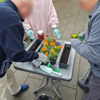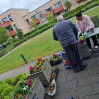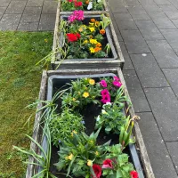 Hallo lieber Frühling! Wir haben den grauen Tag mit bunten frischen Blumen verschönert.Zwei unserer Männer haben die Beete mit Unterstützung aufgehübscht und hatten sehr viel Spaß dabei! Zurück