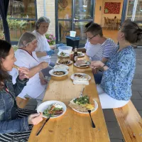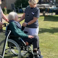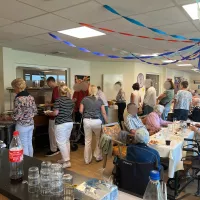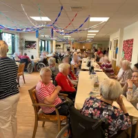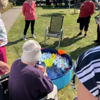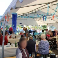 Wir haben unser diesjähriges Sommerfest mit unseren Bewohnern und einigen Angehörigen gefeiert. Es gab einen sehr schönen Auftritt des Shanty-Chors "Segel-Club Hamme e.V.", Kaffee und Kuchen, ein Grillbuffet mit frischen Salaten sowie viel Spaß am Glücksrad. Man konnte ebenso Enten angeln und Dosenwerfen.