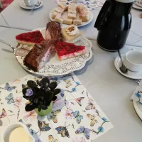 Geburtstagskaffee Ein schön gedeckter Tisch für den Geburtstagskaffee. Es ist für unsere Hausdame immer ein Vergnügen den Tisch so schön herzurichten. 🎂 Zurück