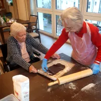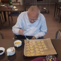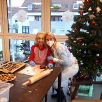 Viele Bewohner:innen haben noch eigene Plätzchenideen im Kopf, die auf den verschiedenen Wohnbereichen zu backen versucht werden, so gab es diese Woche Haselnussmakronen ohne und mit Obladen- Bilder gibt es keine, weil sie einfach zu lecker und schon aufgegessen waren, als die Kamera ankam.