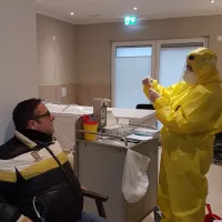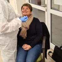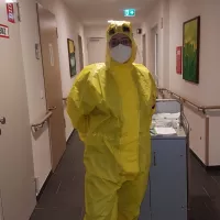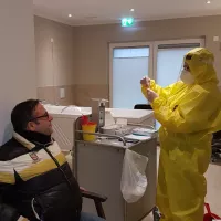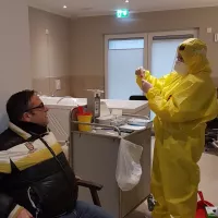 Einmal wöchentlich werden Mitarbeiter und Bewohner getestet sowie bei auffälligen Symptomen. Außerdem werden alle Besucher des Hauses vor jedem Besuch getestet. Das Ganze wird durch unsere Pflegedienstleitung Frau Fressel vorgenommen. Für diesen Test wird ein Abstrich aus dem Nasen-Rachenraum entnommen. Das ist in keinster Weise schmerzhaft, nur etwas unangenehm, da es kitzelt oder den Würgereflex auslösen kann. nach ca. 6 min steht das Ergebnis fest und sie können im Besten Fall die Angehörigen besuchen. Haben sie keine Scheu zu fragen, sollten sie verunsichert sein.