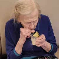 Und das ist gedanklich schon auch eine Leistung, denn Englisch zu sprechen, ist in der Generation unserer Bewohner*innen noch nicht so selbstverständlich wie für die jüngeren, ebenfalls O-Ton eines anderen Bewohners.