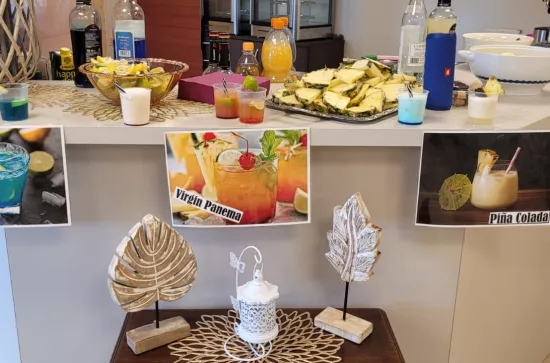 Wie in gesellig fröhlicher Stimmung von einer unserer Bewohner*innen zum Besten gegeben wurde, brauchen wir die blaune Lagune nicht mehr anbieten, denn blau sei keine Farbe sondern ein Zustand und den würden wir auch nur mit unserer Piña Colada erreichen (wohlgemerkt waren unsere Cocktails nur auf Wunsch mit Alkohol und ansonsten frei von Umdrehungen ;) )