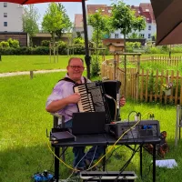 Auf dem Programm stand Schunkelmusik von Anja & Harald ( http://www.harald-weiner.de/ ), zwei Variationen hausgemachte Erdbeerbowle- ganz klassisch mit Waldmeister und neumodisch mit Holunder-.