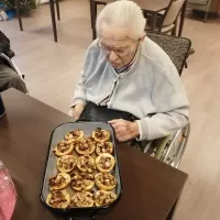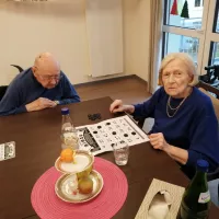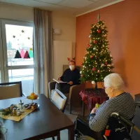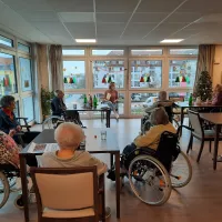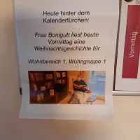 Der Adventskalender wurde täglich geöffnet und versteckt waren für jede Wohngruppe Weihnachtsgeschichten. Diese wurden von Frau Bonigutt und mir vorgelesen. Es gab Bingo und Gymnastik. Es wurden Bratäpfel gebacken und noch Vieles mehr.