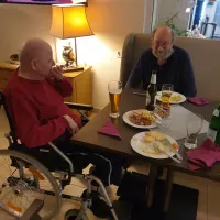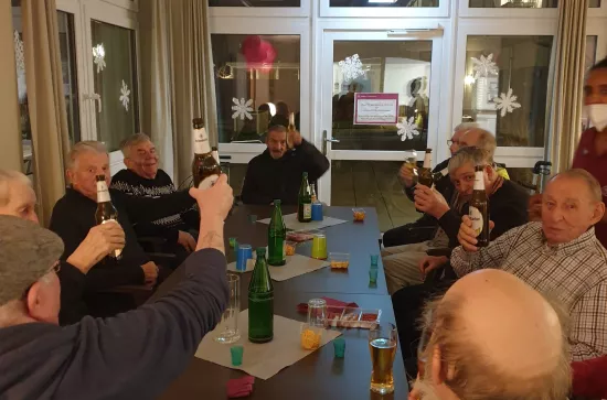 Wir feierten am 25.1.23 unseren ersten Herrenstammtisch im neuen Jahr. Es herrschte ausgelassene Stimmung und die Bewohner hatten viel Spaß zusammen. Bei Gerstensaft, Obstbrände und noch andern flüssigen "Grundnahrungsmitteln" ;-) haben die Bewohner einen lustigen und geselligen Abend verbracht. Zusätzlich gab es noch leckeren Kartoffelsalat mit Frikadelle.