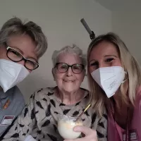 Kurzerhand wurde aus dem Cocktailabend ein Cocktailtaxi. Bewaffnet mit Masken und verschiedenen Cocktails sind wir pro Wohnbereich aufgefahren und haben unsere Bewohner*innen mit Heiß-und Kaltgetränken versorgt.