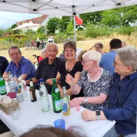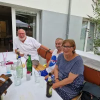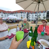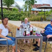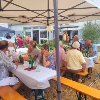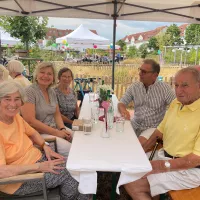 Nach unserem Abkommen mit dem Wettergott Petrus, wie jedes Jahr erst zum Abbau mit Gewitter zu beginnen, hatten wir in der ganze Sommerhitze ein laues Lüftchen, das uns während der spannenden Märchenerzählung von Anja& Harald ( ja, das können die beiden auch :) ) um die Nase wehte.