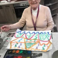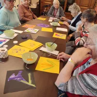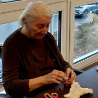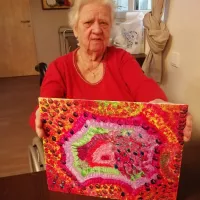 Um die Kunstwerke Ihrer Angehörigen zu bewundern, müssen Sie nur an unserer Begegnungsstätte vorbeilaufen, hier hängen aktuell unsere Fadentechnikbilder zum Bestaunen aus.