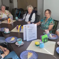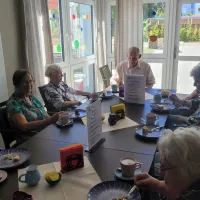 Im Austausch mit den Betreibern, stellvertretend anwesend waren Herr Götz-Pijl und Herr Pijl, wurde unseren Bewohner*innen die Möglichkeit ihren Geburtstag gern auch mit Familie und Freunden- am besten nach Anmeldung, damit dann genug für alle Gäste vorhanden ist- im Kaffee Kunterbunt e.V. zu verbringen und zu feiern.