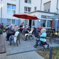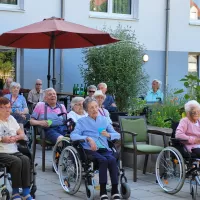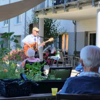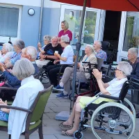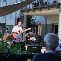 Mit uns gut bekannten Hits aus der Jugend unserer Bewohner*innen hat Frank uns eingeheizt, sodass wir zum Abschluss den Chören aus Dietzenbach Konkurrenz hätten machen können :)