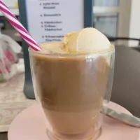 Wir haben uns den Temperaturen angepasst. Ein toller Eiskaffe mit selbstgemachten "veganen und Lactose freiem" Eis.