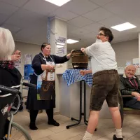 Mit unseren hauseigenen Lausbuan und Madln wurde zünftig bei bayrischer und schlagerlastiger Musik zu Fassbier, Haxe & Weißwurscht mit Kraut, Radisalat und Knödeln gefeiert- "leider" waren wir nach dem ganzen Tanzen , es gab sogar Line-Dance und Geschunkel so hungrig, dass kein Bild davon geschossen werden konnte ;)