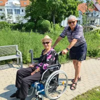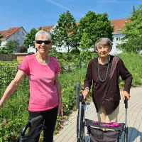 Auch unsere Bewohner lockt das sonnige Wetter in den Garten. Wir gehen und stehen, entspannen uns in der Sonne, lassen uns kutschieren und beobachten das Treiben von Hoch oben!