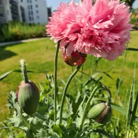 Die letzten sonnigen Tage haben unsere Blumen erweckt. Die Beete schillern in allerlei bunten Farben und locken die Bienen an. Es brummt und summt das rege Treiben.
