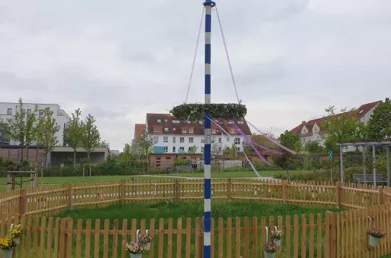 Zünftig, wie es der gute Brauch will, haben wir an unserem Tanz in den Mai einen Maikranz aufgestellt.
