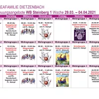 Wochenpläne vom 29.03. - 04.04.2021 Hier wieder zur besseren Übersicht unsere Wochenpläne. Ihr Team der DOREAFAMILIE Dietzenbach Zurück