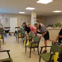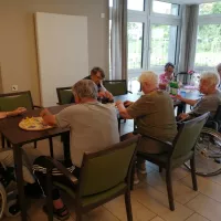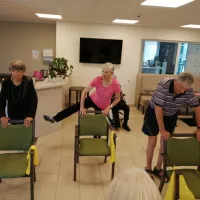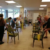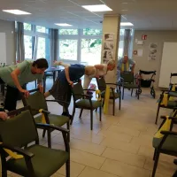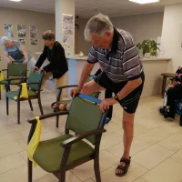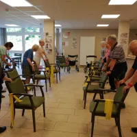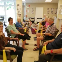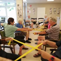 Unsere geh- und stehfähigen Bewohner wurden zum Freitagmorgen im Gymnastikangebot auf die Probe gestellt. Trotz der anspruchsvollen Übungen mit Therabändern kamen alle ohne blaue Flecken davon :)