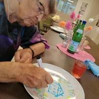 Ganz neu in unserer Kreativwerkstatt und mit einer riesigen Begeisterung aufgenommen, wurde die Bemalung der Wandteller. Jeder Bewohner konnte seinen Teller nach eigenem Geschmack gestalten und später werden diese Teller die Wände der Zimmer schmücken.