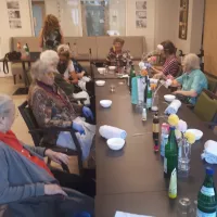 ...und damit sich das gute Aussehen auch lohnt, folgte das Damenkränzchen sogleich. Alle Damen des Hauses- und ein Herr in Tarnung- konnten sich bei Kaffee, Kuchen und Bowle den Nachmittag versüßen.