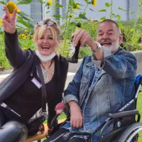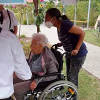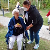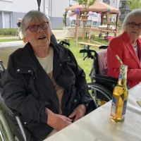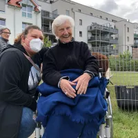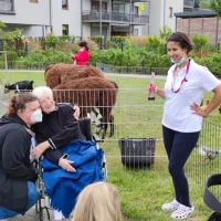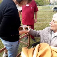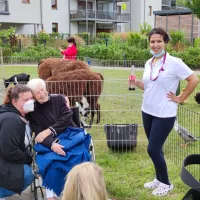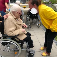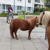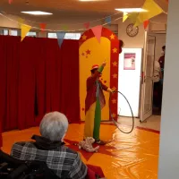 Ein ganz besonderes Highlight für unsere Bettlebigen oder auch einfach nur nicht so sehr geselligen Bewohner*innen war der Besuch von Becky & Heidi IM Haus/Zimmer. Das war Zirkus zum Anfassen.