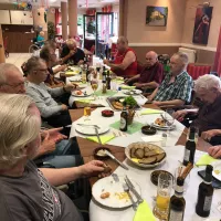 Abendveranstaltung "Herrenstammtisch" Am 05.08.2022 lud unsere Alltagsbegleiterin Frau Mariela Giesa zum monatlichen Herrenstammtisch ein. Bei Hausmacher-Wurst, frischem Brot und Bier verbrachten sie gemeinsam einen freudvollen und familiären Abend. Zurück
