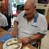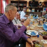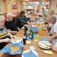 Abendveranstaltung "Herrenstammtisch" Am 09.09.2022 lud unsere Ergotherapeutin Frau Tanja Preuss zum monatlichen Herrenstammtisch ein. Bei Hausmacher-Wurst, frischem Brot und Bier verbrachten sie gemeinsam einen freudvollen und familiären Abend. Zurück