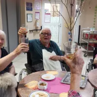 Bei kühlem Apfelwein und Handkäs mit Musik verbrachten sie gemeinsam mit unseren Bewohner- / Innen einen fröhlichen Abend.