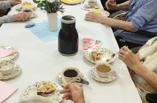 Damenkaffeekränzchen Zum monatlichen Damenkaffeekränzchen lud unserer Alltagsbegleiterin Frau Tina Alahmad Alfayad am 21.08.2020 ein. Bei einer schön gedeckten Kaffeetafel und lecker Kuchen verbrachten sie einen wunderschönen Nachmittag. Zurück