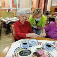 Damenkaffeekränzchen Zum monatlichen Damenkaffeekränzchen lud unserer Alltagsbegleiterin Frau Carmen Bauer am 23.10.2020 ein. Bei einer schön gedeckten Kaffeetafel und lecker Kuchen verbrachten sie einen wunderschönen Nachmittag. Zurück