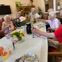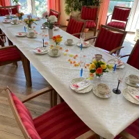 Damenkaffeekränzchen Am 07.07.2021 lud unsere Alltagsbegleiterin Frau Gülsün Yurtsever zum ersten Damenkaffeekränzchen in diesem Jahr ein. Viele Bewohnerinnen folgten ihrer Einladung und genossen bei Kaffee und Kuchen einen freudvollen und familiären Nachmittag. Zurück