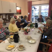 Damenkaffeekränzchen Am 16.11.2021 lud unsere Alltagsbegleiterin Frau Mariela Giesa zum Damenkaffeekränzchen ein. Viele Bewohnerinnen folgten ihrer Einladung und genossen bei Kaffee und Kuchen einen freudvollen und familiären Nachmittag. Zurück