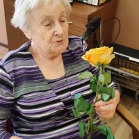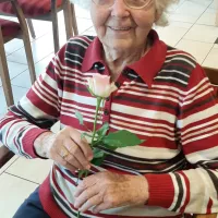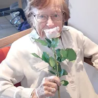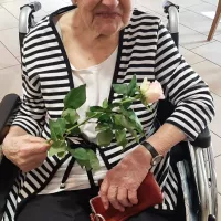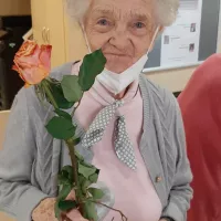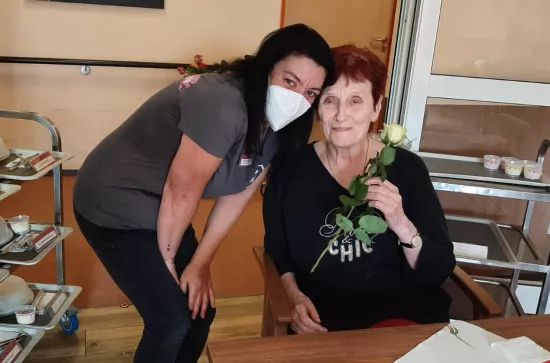Eine Rose zum Muttertag Zum Ehrentag der Mütter verteilten unsere Alltagsbegleiterinnen Frau Christine Vogel und Frau Tina Alahmad Alfayad an jede Bewohnerin eine Rose. Strahlende Augen, aber auch ein paar Tränchen, waren an diesem Tag zu sehen. Zurück