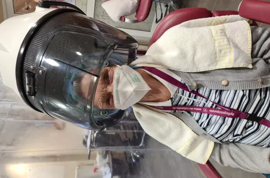 Endlich wieder der Friseur im Haus Am 03.03.2021 war es endlich soweit und die Friseurin kam wieder in die Seniorenresidenz. Vor allem unsere Bewohnerinnen fieberten schon Tage vorher diesem Termin entgegen. Wieder ein wichtiger Schritt in Richtung „Normalität“ ist damit geschafft. Zurück