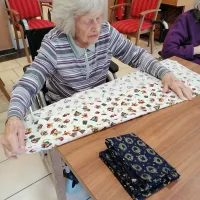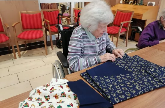 Handarbeitskreis Gemeinsam mit unserer Ergotherapeutin Frau Tanja Preuss stellten unsere Bewohner- / Innen am 13.12.2021 Weihnachtsbaumanhänger aus Stoffen her.. Unsere Bewohner erzählten dabei, was sie früher alles an den Weihnachtsbaum gehangen haben. Zurück