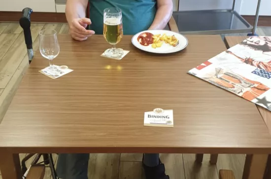 Herrenstammtisch Am 18.09.2020 lud Alltagsbegleiterin Frau Tina Alahmad Alfayad zum monatlichen Herrenstammtisch ein. Bei Pommes rot weiß und Bier verbrachten sie gemeinsam einen freudvollen Nachmittag. Zurück