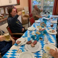 Herrenstammtisch Am 15.10.2020 lud Alltagsbegleiterin Frau Gülsün Yurtsever zum monatlichen Herrenstammtisch ein. Bei lecker belegten Broten mit Hausmannswurst und Bier verbrachten sie gemeinsam einen freudvollen Nachmittag. Zurück