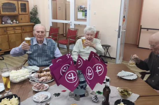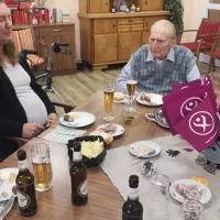 Herrenstammtisch Am 02.11.2021 lud Alltagsbegleiterin Frau Carmen Bauer zum monatlichen Herrenstammtisch ein. Bei Fleischwurst, Frikadelle und Bier verbrachten sie gemeinsam einen freudvollen Nachmittag. Zurück