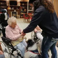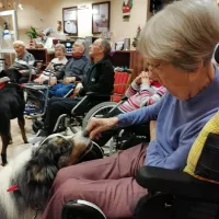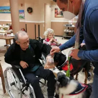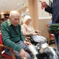 Unsere Bewohner- / Innen konnten an diesem Nachmittag ausgiebig mit den Hunden Charly und Kia kuscheln, sie streicheln und mit ihnen spielen.