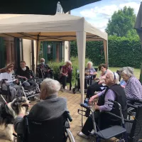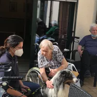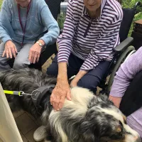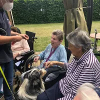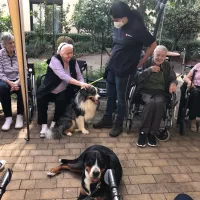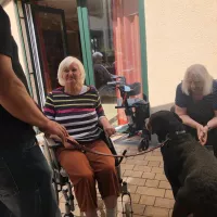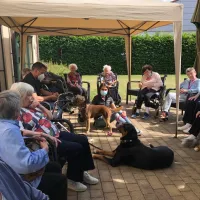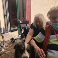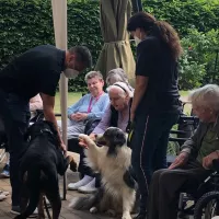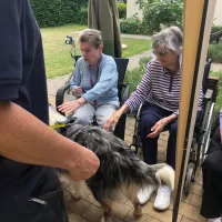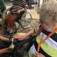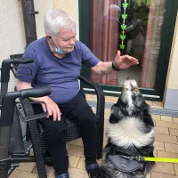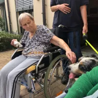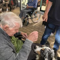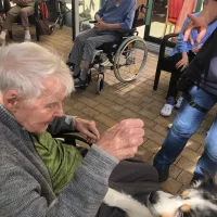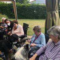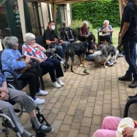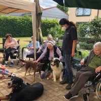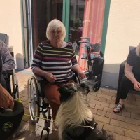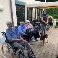 Unsere Bewohner- / Innen konnten an diesem Nachmittag wieder ausgiebig mit den Hunden kuscheln, sie streicheln und mit ihnen spielen.