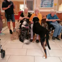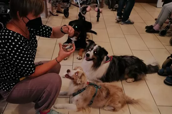 Unsere Bewohner- / Innen konnten an diesem Nachmittag wieder ausgiebig mit den Hunden kuscheln, sie streicheln und mit ihnen spielen.