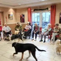 Am 08.12.2022 kam der Hundebesuchsdienst der Malteser wieder in die Seniorenresidenz.