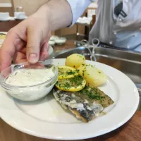 Es gab gebratene Forelle Müllerin Art mit Kartoffel-Dill-Salat.