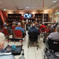 Kinoabend Zum Kinoabend lud unsere Ergotherapeutin Frau Tanja Preuss am 25.11.2022 ein. Unsere Bewohner / Innen schauten sich bei Glühwein und Lebkuchen den Film „Die Nacht vor Weihnachten“ an. Zurück