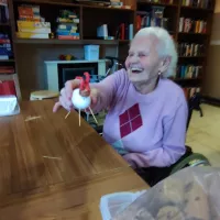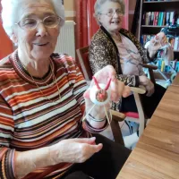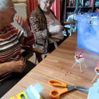 Künstlerisches Gestalten Beim Künstlerischen Gestalten am 21.10.2021 bastelten unsere Bewohnerinnen gemeinsam mit unserem Mitarbeiter Herr Marc Lievre „Rentiere“. Unsere Bewohnerinnen hatten sichtlich Freude daran und nahmen sie mit auf ihr Zimmer zur Dekoration. Zurück