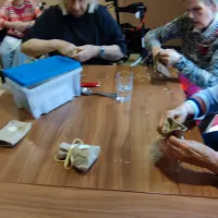 Am 01.11.2021 stellten unsere Bewohner- / Innen im Rahmen des Gruppenangebots „Künstlerisches Gestalten“ Duftsäckchen mit Lavendel her.