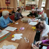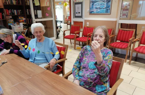 Künstlerisches Gestalten Gemeinsam mit unserer Ergotherapeutin Frau Tanja Preuss stellten unsere Bewohner- / Innen am 14.02.2022 bunte Dekorationschlangen selbst her. Unsere Bewohner hatten dabei viel Spaß und waren sichtlich stolz über ihr tolles Ergebnis. Zurück