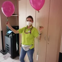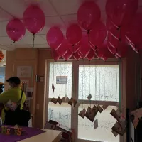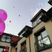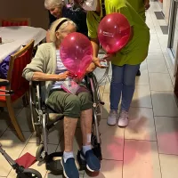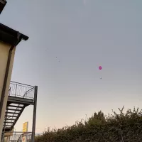 Gegen 19:15 Uhr ließen wir alle gemeinsam Ballons mit Postkarten steigen und hoffen das auch die ein oder andere Postkarte den Weg zu uns zurückfindet.